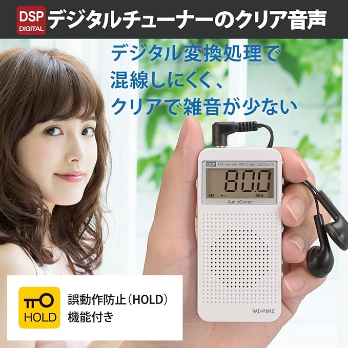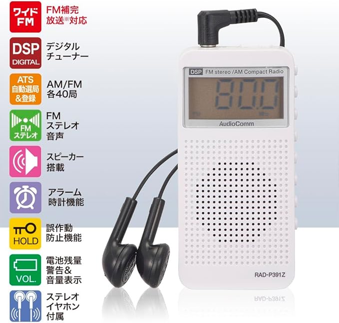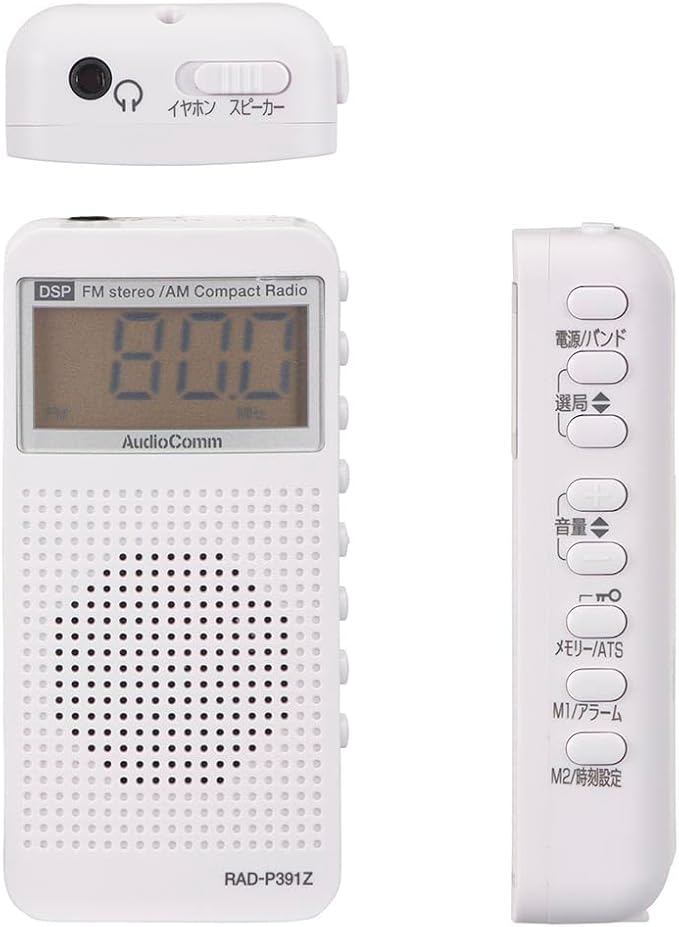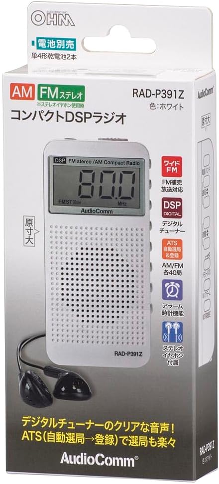 オーム電機AudioComm ラジオ ポケットラジオ コンパクト ポータブルラジオ AM/FMステレオ デジタルチューナー 自動選局/登録 ATS スピーカー付 時計 アラーム イヤホン付き ワイドFM コンパクトDSPラジオ ホワイト RAD-P391Z 03-5030 OHM | KAZESHOP