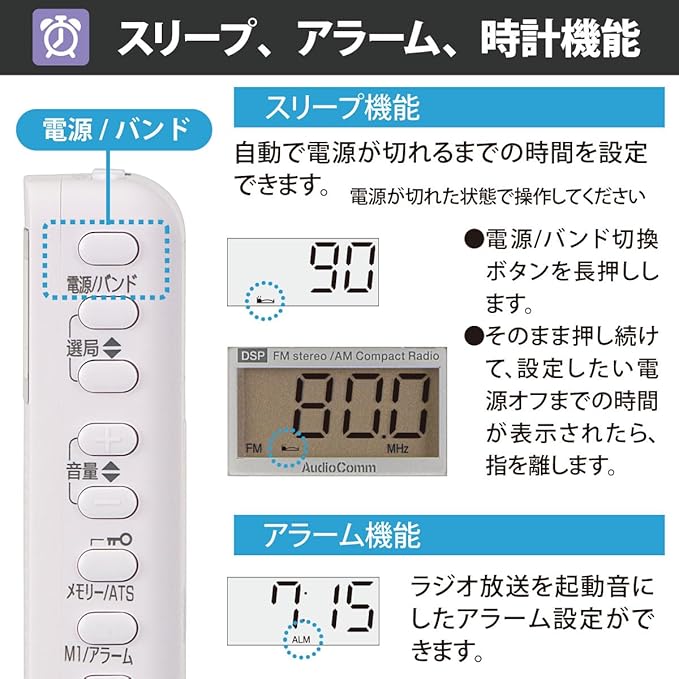 ● アラーム時計機能(時計/アラーム/スリープ)付き