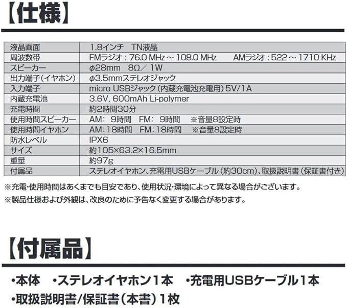 特徴 ワイドFM対応, 防水性能:IPX6(耐水形)