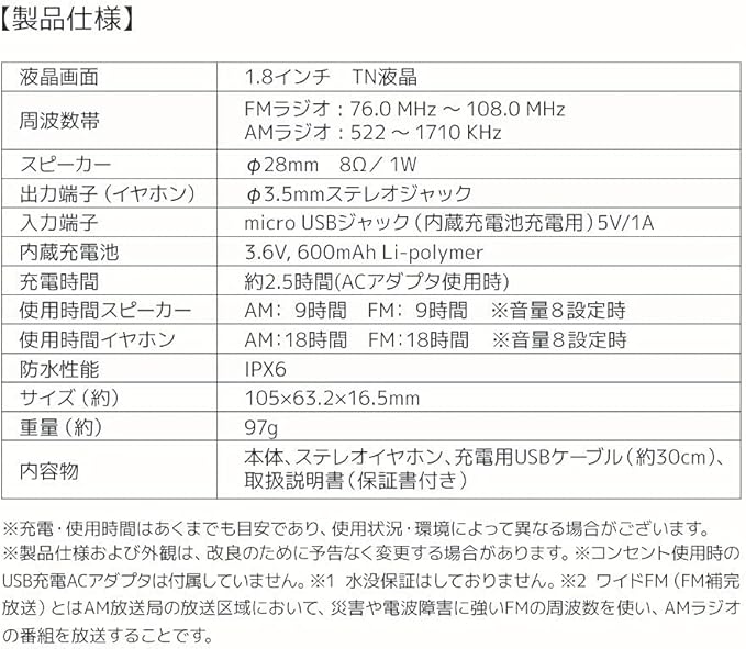 対応無線周波数 AM/FM