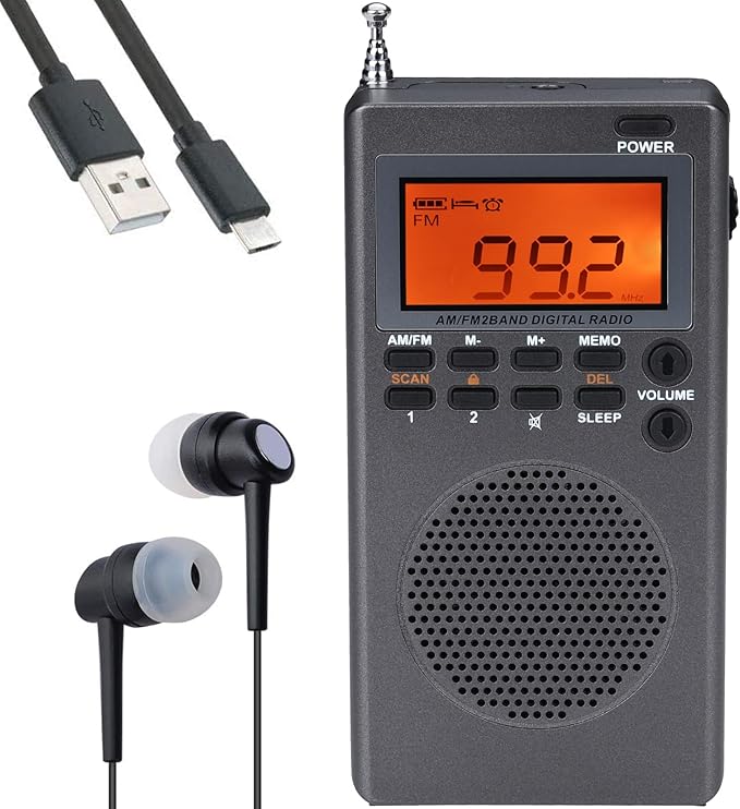 【デジタルラジオ】DSP(デジタル受信)でクリアな音声、DSP FMステレオAMポケットラジオ。ワイドFMは、音質の良いFM放送の周波数でAM放送を聴くことができるものです。伸縮アンテナ、長さ約450mm、正確な信号の放送局を受信しやすいです。また、オレンジ色バックライトは良い色合いで暗い所でも確認容易。