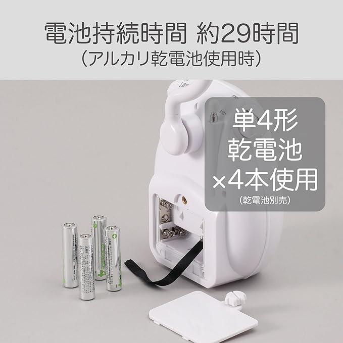 ・乾電池持続時間:ラジオ受信時 約29時間(アルカリ乾電池使用時)