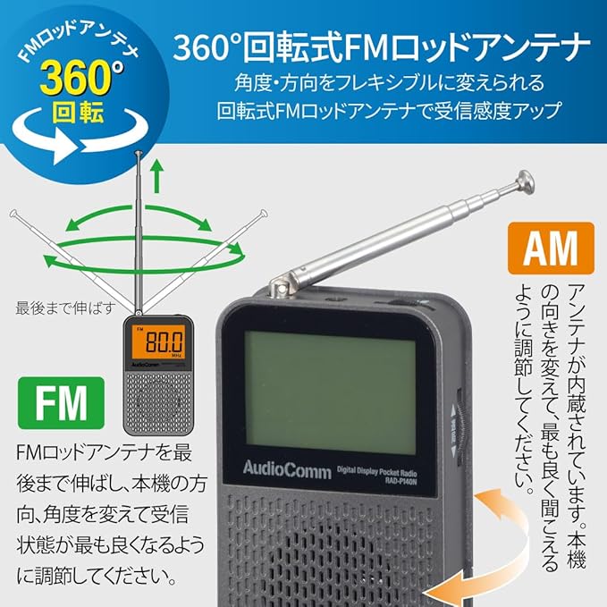 オーム(OHM) ラジオ ポータブル ポケットラジオ 防災ラジオ AudioComm 液晶表示ポケットラジオ デジタル選局 ワイドFM対応 RAD-P140N 03-7246 オーム電機 | KAZESHOP
