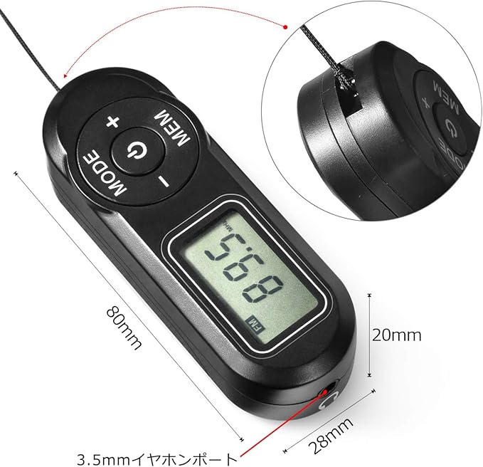 「高音質・持ち運びやすく」3.5 mm ミニ ジャック、音量が調整可能なステレオイヤホンを付属して、ラジオ番組と音楽を楽しむ同時に、周りの他人に迷惑をかけません!ポータブルラジオのサイズは80x28x20mm、小型でコンパクトで、持ち運びやすいです。更にハンドストラップと掛けストラップを備えて、便利に首に掛けたり、手に掛けたりできます!