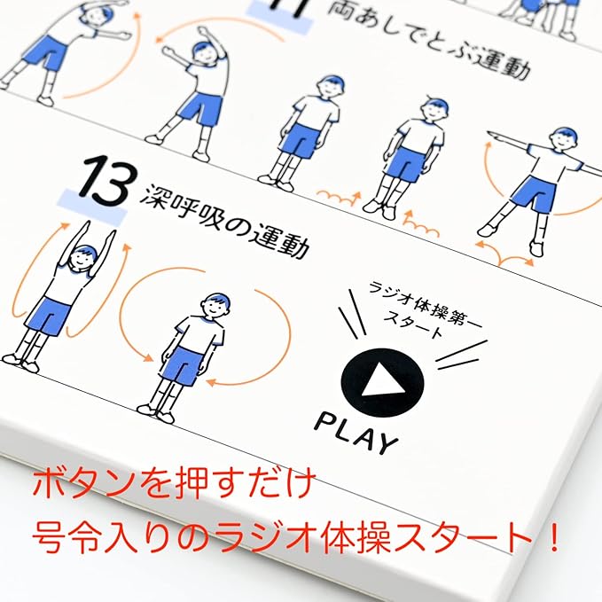 CDプレーヤー不要 簡単再生 ボタンを押すと号令入りでラジオ体操が流れます。