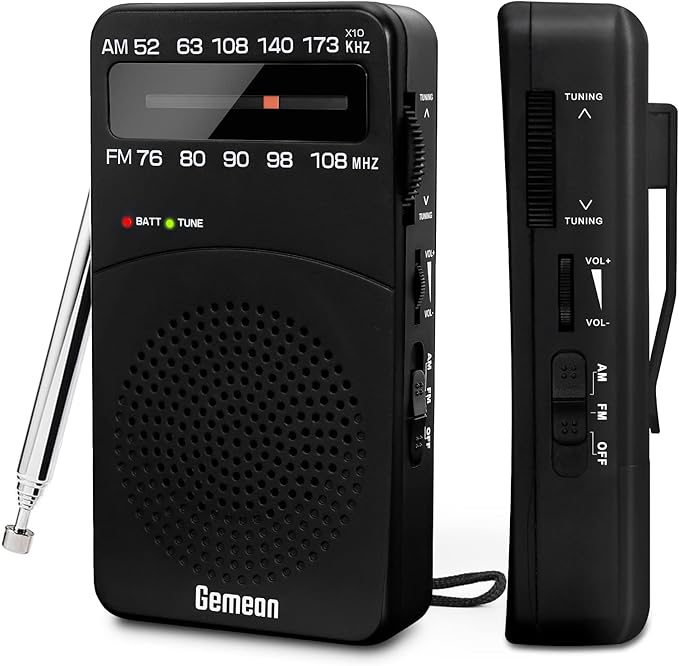携帯防災ラジオ 高感度 am/fmポータブル 小型 電池式 バッテリー交換可能 信号インジケーター付きの同調ノブ(バッククリップ付き)アナログ 単3形電池利用 アウトドアや災害時に対応。(モデルJ-166)by Gemean(黒) | KAZESHOP