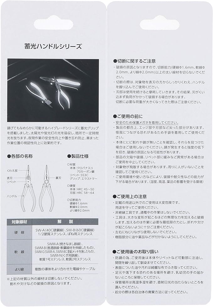 切断能力:(硬線)1.6mm径・(軟線)2.0mm径・(より線)2.0mm径