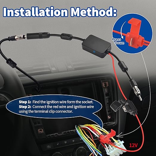 普遍的な車のステレオ FM ラジオ アンテナ信号ブースター アンプ、12 v 電源 DIN プラグ コネクタ アダプター車トラック SUV 車オーディオ ラジオ ステレオ メディア ヘッド ユニット レシーバー用