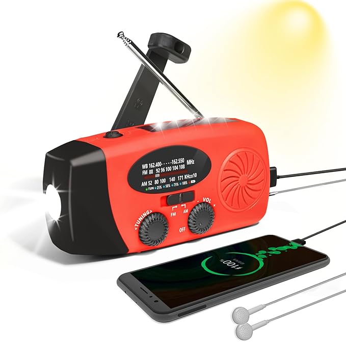 防災ラジオ 多機能 ソーラーラジオ 手回し充電 大容量6000mAh 3WAY充電 PSE認証済み 懐中電灯・SOSアラーム機能・イヤホン対応・スマホ充電可(Androidとiphoneのスマホ適応) コンパクト アウトドアキャンプ用 防水 軽量 小型AM/FM 地震/台風/津波など停電緊急対策 防災グッズ レッド色 | KAZESHOP