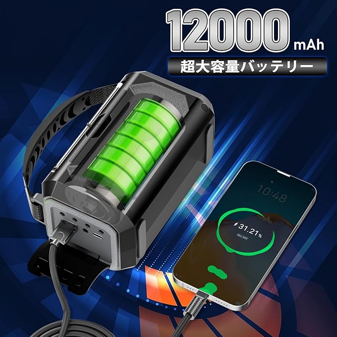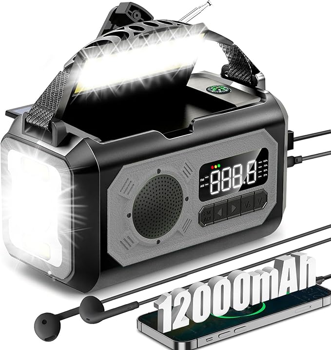【12000mAhの大容量バッテリー搭載で、安心の電源供給】 このラジオは、12,000mAhの大容量バッテリーを搭載しており、緊急時には携帯電話や小型タブレットなどのデバイスに電源を供給することができます。停電時や災害時でも、大切なデバイスの充電を確保し、安心を提供します。