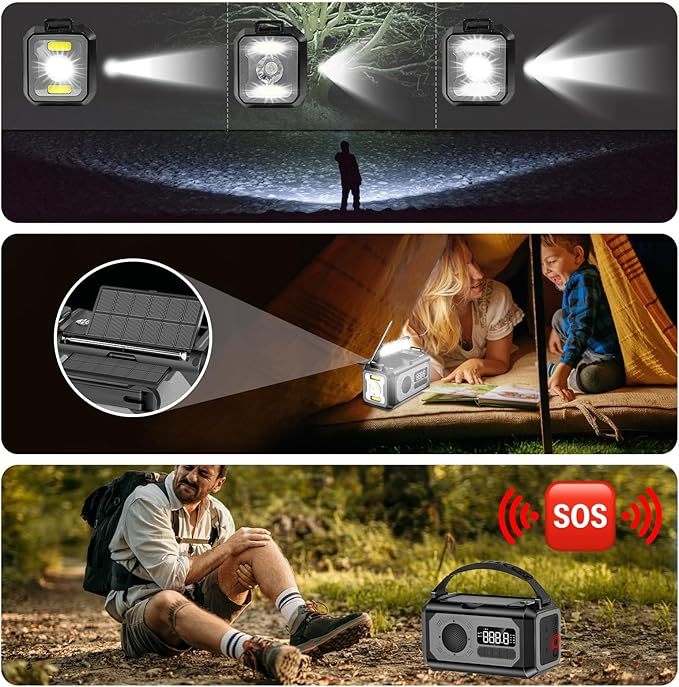 ⛽【3つの充電モードで、いつでもどこでも充電可能】 このラジオは、USB充電、ソーラー充電、手回し充電の3つの充電モードに対応しており、停電時や災害時など、あらゆる状況で充電が可能です。効率的なソーラーパネルを搭載しているので、太陽光があれば充電できます。太陽光が得られない状況では、手回し充電でバッテリーを充電できます。