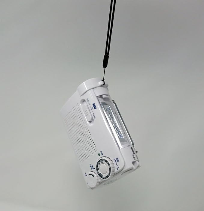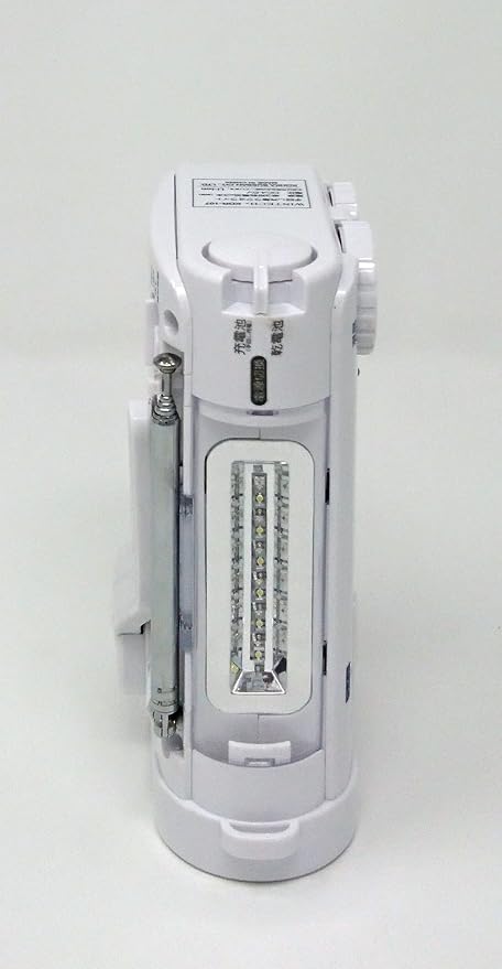 ●商品名:手回し充電ラジオライト●品番:KDR-107●JANコード:4521171 114441(W)●標準価格:オープン●本体サイズ:W135xD55xH95mm●本体重量:約270g●電源:内蔵充電池(Li-ion)手回し充電、USB充電対応/単3乾電池3本使用(別売)●仕様 *普段使用も可能なスタイリッシュデザイン*重量:270g*AM/FMラジオ(FMワイドバンド対応)*内蔵スピーカー:音声出力最大150mW*受信周波数範囲:AM:530-1620KHz/FM1:76.0-90MHz/FM2:88-108MHz※FMワイドバンド対応*3LEDライト、6LEDランタン搭載(切換え式)*伸縮回転アンテナ搭載*microUSBケーブル+緊急携帯電話充電用アダプタ付属(FOMA/Softbank・au)*イヤホン端子搭載*ストラップホール(ハンドストラップ付属)*電源入力microUSB端子*電源出力USB端子●付属品:取扱説明書/ハンドストラップ/microUSB-USBケーブル、携帯充電アダプタ(FOMA/Softbank・au)※携帯アダプターは機種により非対応のモデルもあります。※PHS、iPhone用携帯充電アダプターは付属しておりません。iPhoneへの携帯充電はサポートしておりません。
