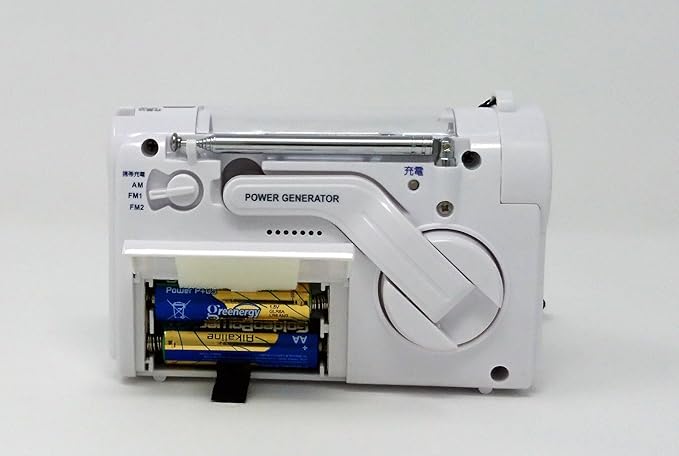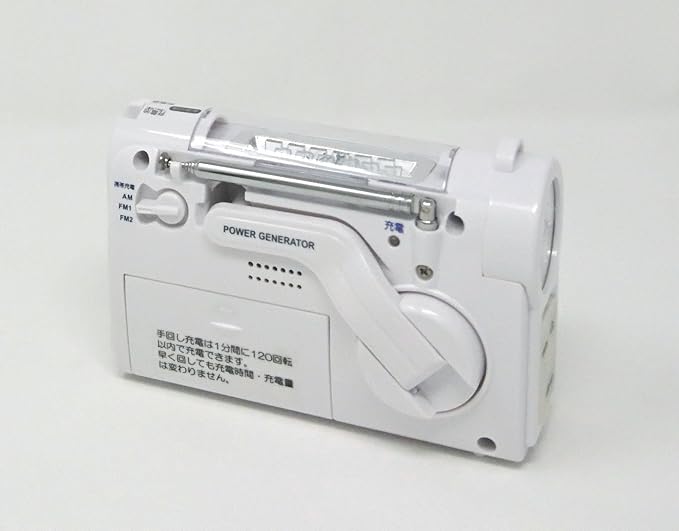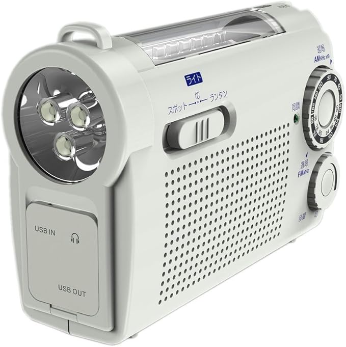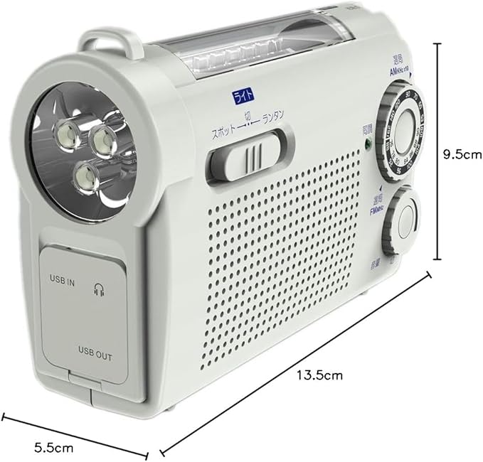 電源:内蔵充電池(Li-ion)手回し充電、USB充電対応/単3乾電池3本使用(別売)