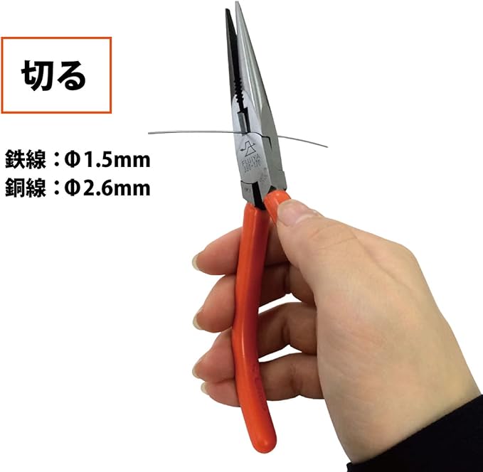 通常のラジオペンチよりも長くかつ先端を細く仕上げている為、奥まった場所での作業に最適です