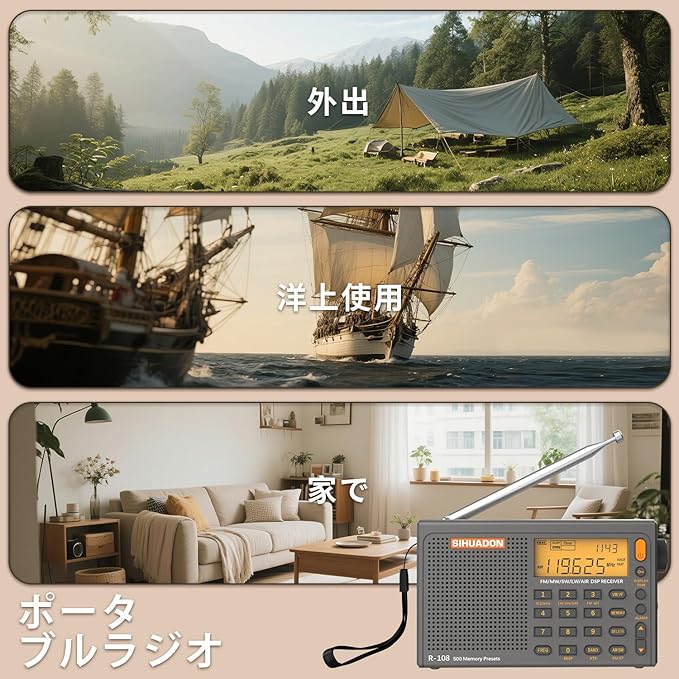 【高音質】SIHUADON R-108短波ラジオの高品質な材料と部品はラジオの出力を正常にすべての放送局を行うことができる。バックライト付きのLCDスクリーンは夜間に使う時にとても便利。