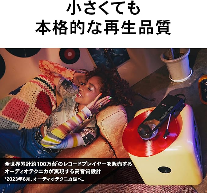 小さくても本格的な再生品質創業60年のオーディオメーカーによる高音質再生。特別なアームと交換可能な針を採用携帯性とトーンアームの安定性を両立させるため、バネにより針圧をかけるダイナミックバランス方式を採用しています。また、針先は世界的に流通している当社交換針ATN3600L(別売)に交換して使用することができます。33/50回転に対応可能なベルトドライブ方式、安定した回転を保持する高精度DCモーターを採用、制振設計を施したアルミニウム合金ダイキャスト仕上げのプラッター。