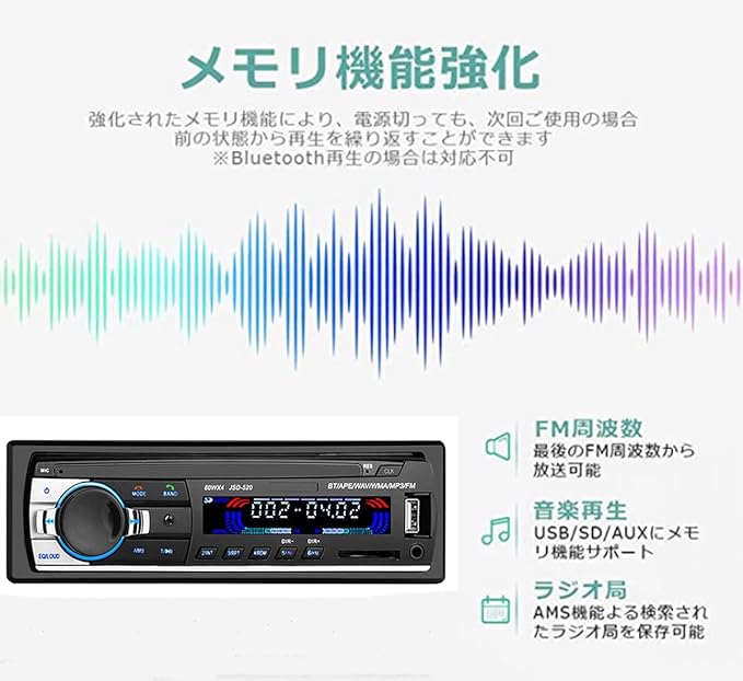 Eaglerich 車ラジオ Bluetooth 車音響 カーオーディオ ステレオ プレーヤー リモコン付き 1 Din 12V 【76-108MHz 日本国内FMラジオ対応】【日本語版説明書】 | KAZESHOP