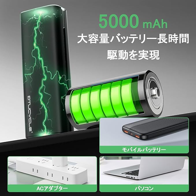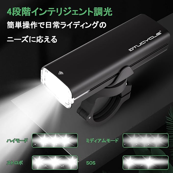 【Type-C急速充電 - 5000mAh大容量バッテリー搭載】バッテリー残量をリアルタイム表示、走行中の状態がひと目で把握可能!インテリジェント4段階調光機能(強光/弱光/ストロボ/SOS)で、市街地では省電力モード、野外では強力ライトが走行をサポート。高輝度モードで3時間、省エネモードなら最大10時間の連続使用が可能!長時間の使用はより楽しいライディングを実現すると同時に、安全性の高い照明を提供します。