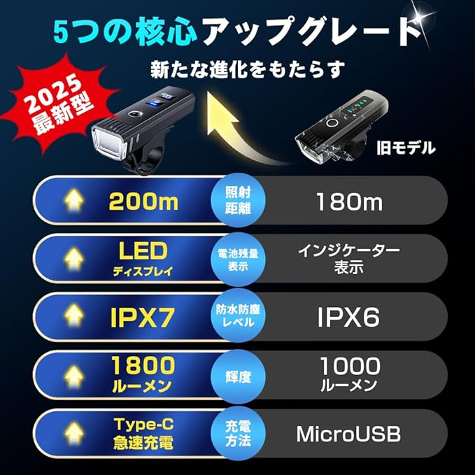 【2025年強化版&高精度デジタル表示】 自転車 ライト 光センサー搭載 自動点灯 高輝度 1800ルーメン 小型 IPX7防水防塵 4つ点灯モード 180 照明 自転車ヘッドライト クロスバイク/ロードバイク ライト TYPE-C急速充電 取付簡単 懐中電灯兼用 通勤 防水 防振 防災 地震/停電/登山/夜釣り対応 日本語説明書付き | KAZESHOP