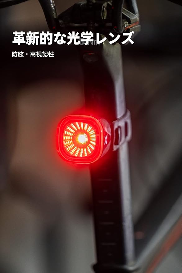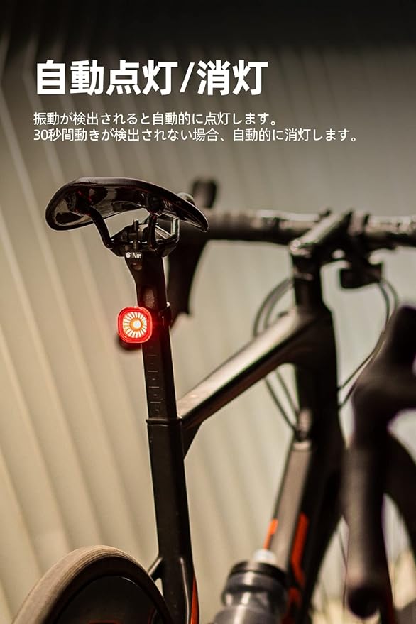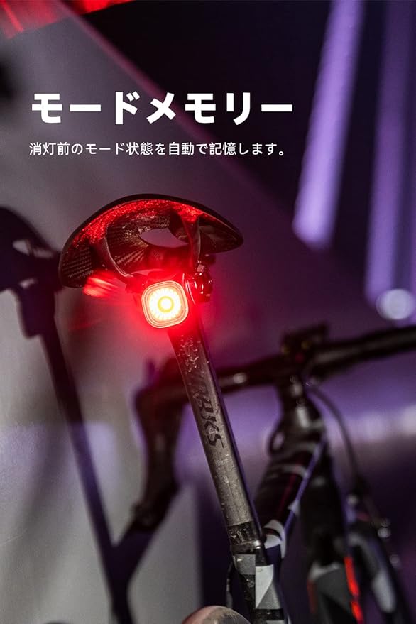 ブレーキ感応:どんなモードでも、振動検知で自転車のブレーキ状態を敏感にキャッチすることができます。内蔵のブレーキセンサーにより、ブレーキを感知すると自動的に最高輝度に点灯します。安全性を大幅に向上させます。