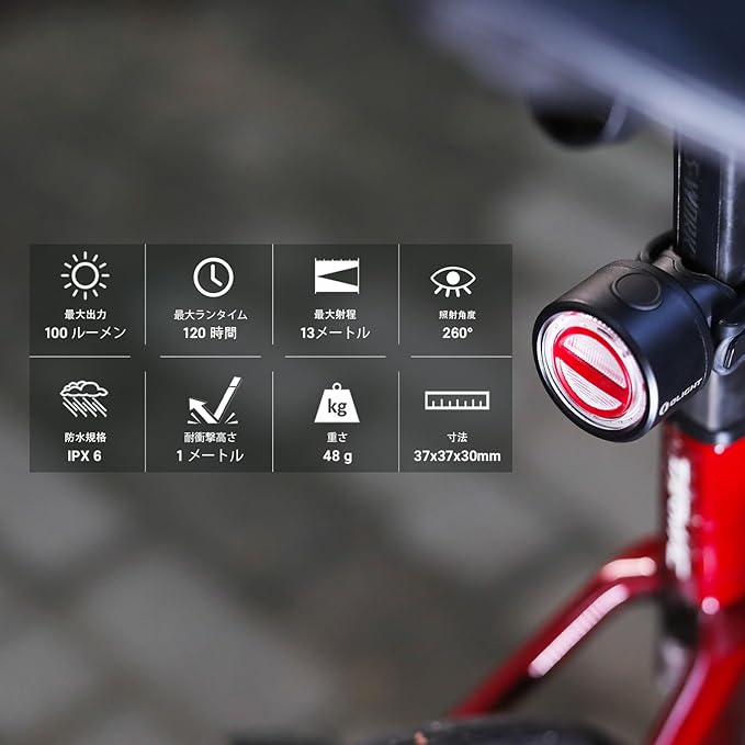 OLIGHT(オーライト) BS100 自転車 テールライト リアライト ブレーキ感応 100ルーメン COD光源 光センサー USB-C充電式 振動センサー IPX6防水 軽量 長時間稼働 夜間補助 ロードバイク バイク 通勤 通学 サイクリング | KAZESHOP