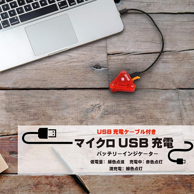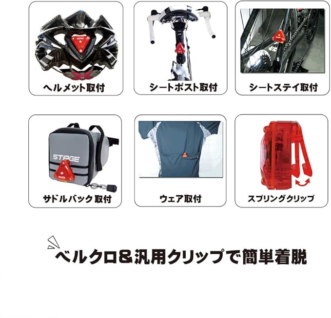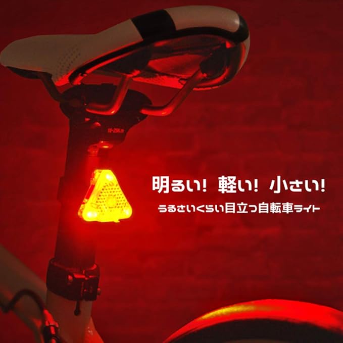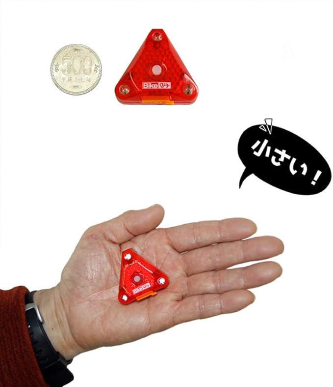 超小型軽量。汎用クリップ付属 [サドルバッグ、ウェアのポケット、バックパック等のストラップにも装着可能]。 IPX4防雨。 ベルクロ&汎用クリップで簡単着脱。 視認性の高いトライアングル(三角形)配置LED [光が大きく見える] 発光色:レッド 強力発光/輝度:18000mcdのLED3個搭載 商品のカラーはディスプレイの種類等により、実物と異なって見える場合がございます。
