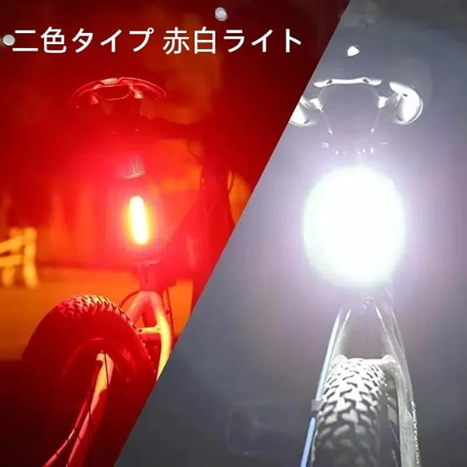 【新モデル1個セット】自転車用テールライト 赤 白 赤白 赤青 自転車用 LEDリア 後ろ IPX4防水 USB充電式 高輝度 7点灯モード セーフティライト サイクリング 通勤 通学 (2色タイプ赤白光) | KAZESHOP