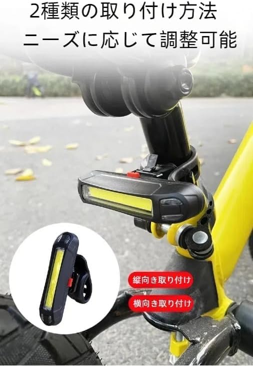 【リピート人気商品】海外でも人気のテールライトは、COB LEDを搭載し、最大出力100ルーメンで、最大で約6時間使用できます。USB充電式なのでモバイルバッテーリー等でどこでも充電出来ます。