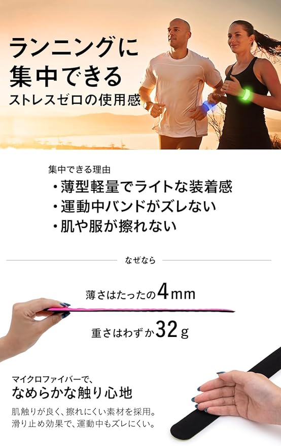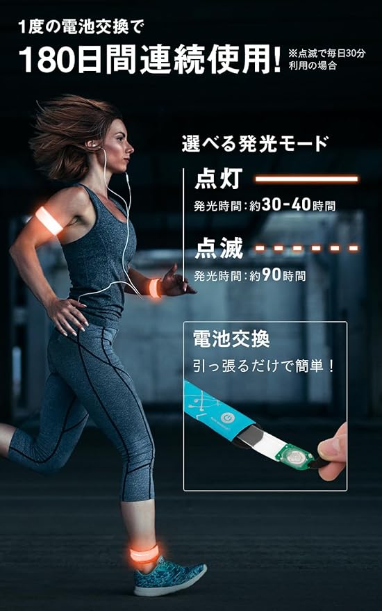 RUN-MARKER 電池式 LED アームバンド 反射バンド 点灯 点滅 片手装着 ランニング 安全 ライト 反射板 蛍光 夜間 ウォーキング サイクリング ジョギング 反射材 バイク 自転車 裾バンド | KAZESHOP