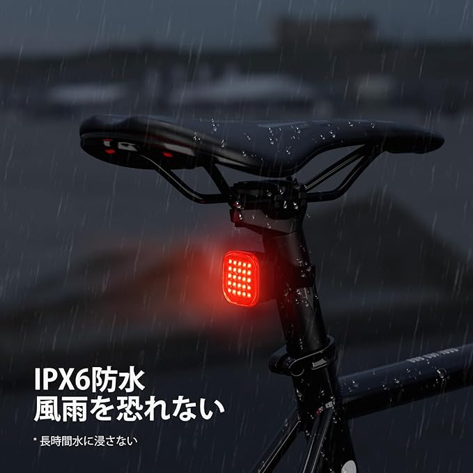 【防水&超コンパクト】- この自転車用リアライトは、雨、水しぶき、悪天候にも耐えられるよう設計されており、IPX6防水規格により、あらゆる状況で信頼性の高いパフォーマンスを保証します。重さわずか0.85オンス、サイズは1.54 1.54 0.98インチと軽量で持ち運びやすく、かさばることなくあらゆる自転車のシートポストに簡単に取り付けられます。外出の多いサイクリストに最適です。