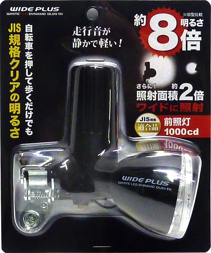 発電コイルが低電圧仕様となっているため、自転車の押し歩きや低速時でもはっきりと点灯し、明るいのが特長