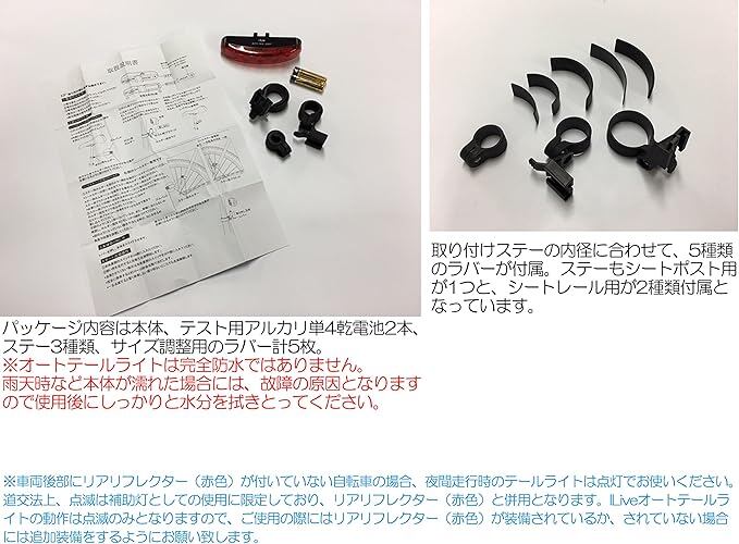 ボタン操作不要の点滅方式のフルオートテールライトで、
