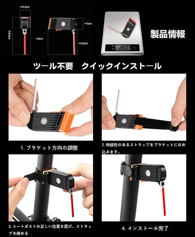 【取り付け簡単】付属のバンドで簡単に丸いシートポストやエアロシートポストに取り付け可能となり、ライトの落下も根本的に防止できます。