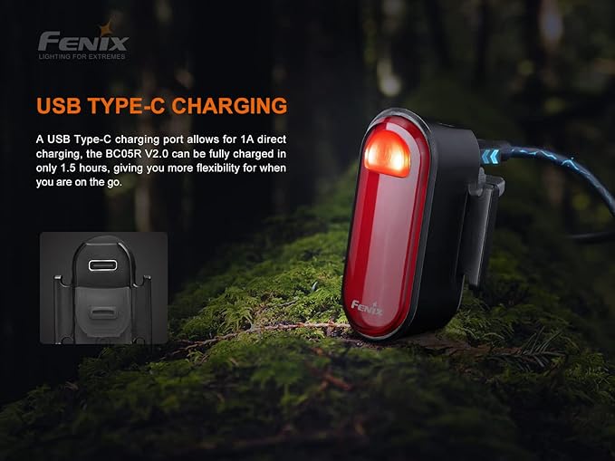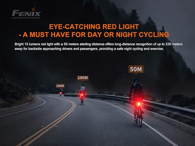 Fenix BC05R v2.0 充電式リアバイクライト | 15ルーメン | 50m | 最大120時間 | コンスタントモードとフラッシュモード | USB-C充電 | ランニング/ハイキング/ウォーキング用ボディクリップ | 180 広角 | IP66 | KAZESHOP