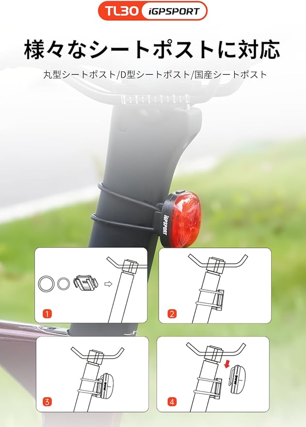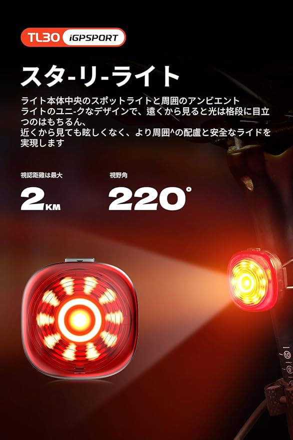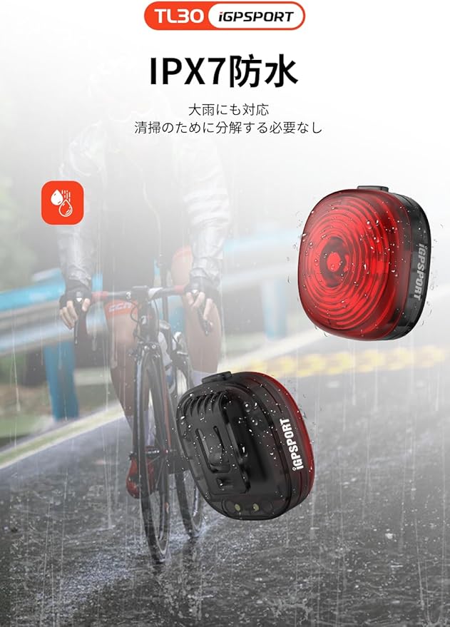 iGPSPORT TL30 自転車 テールライト ロードバイク テールライト 自動点灯 ブレーキ自動警告 自転車 リアライト 光センサー 6つの点灯モード セーフティライト 自動輝度調整 IPX7 220 照射角度 軽量 50時間 長時間対応 ロードバイク夜間補助灯 通勤 サイクル用 ANT+ Bluetooth5.0 50時間 | KAZESHOP