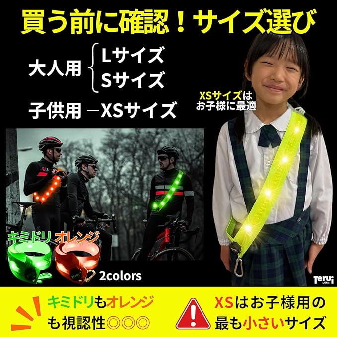 【サイズ展開でぴったりフィット】LサイズとSサイズが大人用、XSサイズが子供用。タスキ形状が体にしっかり沿い、スムーズにフィット。浮きが少なく快適な装着感を実現。反射バンドや反射ベストの代わりにも便利。「楽しくお散歩ができるようになった」とのレビューも寄せられています。