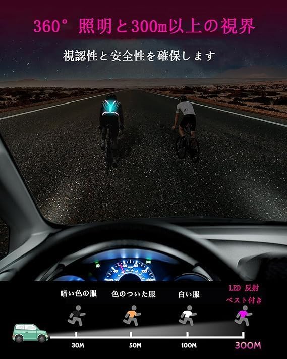 【超高輝度&高視認性】LED反射ベストランニングギアは、高輝度LEDランニングベストライトと反射ストラップを組み合わせて、暗い場所でも視認性と安全性を確保し、安心してアウトドア体験を向上させます。