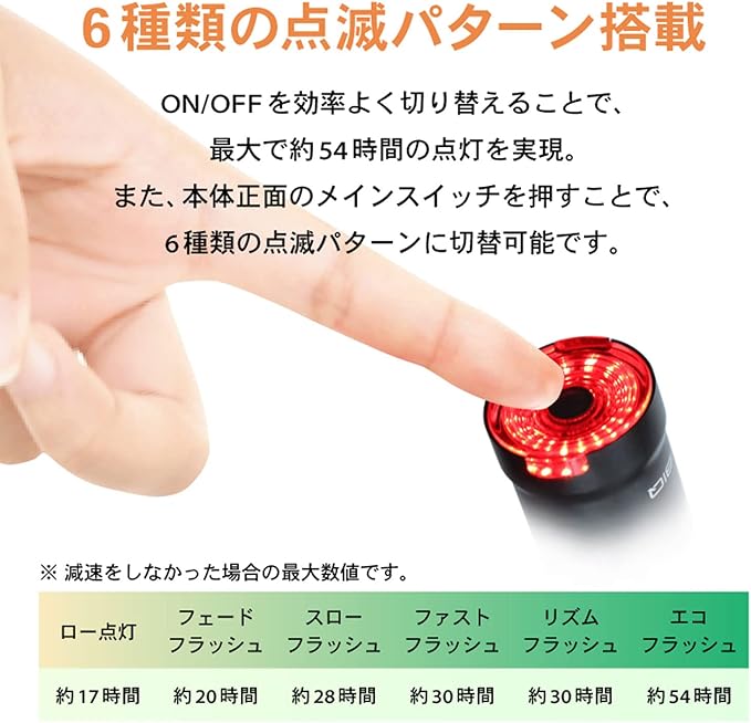 ライトは強い雨にも耐えるIPX6防水仕様。悪天候でも安心してご使用いただけます。