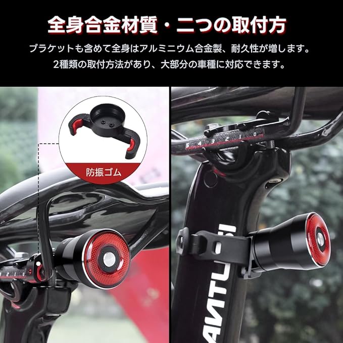 テールライト 自転車 LAOPAO ブレーキ警告 自動点滅 振動・光センサー IPX6防水 Type-C充電式 明るさ調整可能 四種類の点灯 合金材質の固定フレーム リアライト バイク 昼夜通用 合金製 高輝度【日本語説明書】夜間走行 簡易装着 (Q5) | KAZESHOP