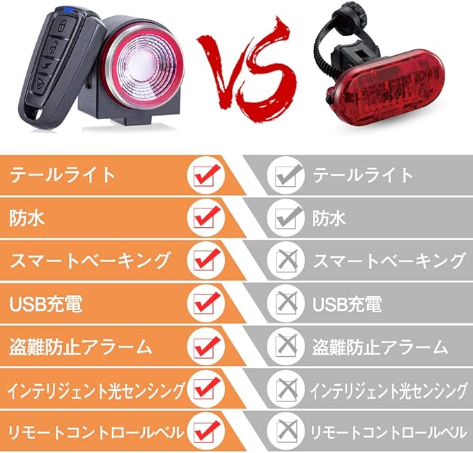 自転車 スマートテールライト 盗難防止アラーム バイク 振動センサー セキュリティアライト ブレーキセンサー セーフティーライト USB充電 115db IP65防水 高輝度COB 夜間走行(A8) | KAZESHOP