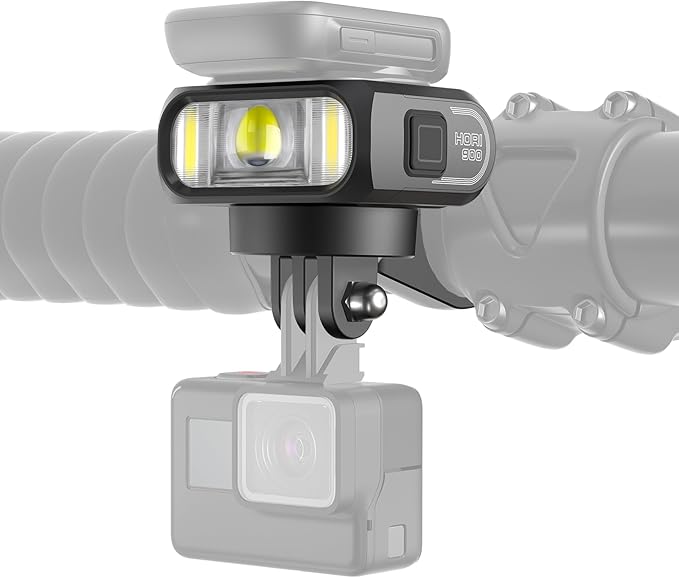 【サイコン統合マウント】Garmin/Wahooサイクルコンピュータをライト上部に直接ストック可能。コンパクト設計で走行中の視認性を確保、レースシーンにも即対応。