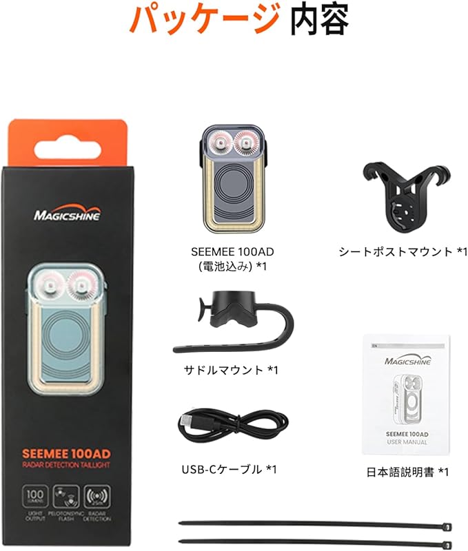 Magicshine 自転車 テールライト SEEMEE 100AD レーダー自動検出 リアライト 100 ルーメン 700mAh IPX6 防水 USB 充電式 高輝度 長時間持つ バイクテールライト 昼夜通用 通勤 通学 登山 夜釣り | KAZESHOP