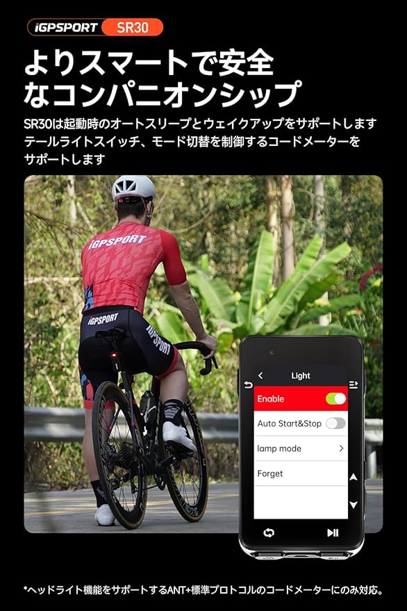 iGPSPORT SR30 自転車 テールライト 自動点灯 IPX7 軽量自転車後方レーダー リアビューレーダー テールライト 後方車両検知 ブレーキング検知 自動起動&スリープ機能 最大65ルーメン ANT+ Bluetooth5.0 20時間バッテリー 1.6kmで見える | KAZESHOP