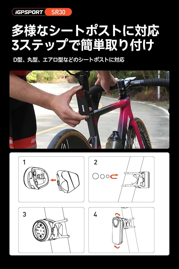【幅広い互換性】SR30ロードバイクテールライトは、iGPSPORT BSC300、iGS630、iGS800バイクコンピューターと互換性があり、iGPSPORT APPと単独でも使用可能です。また、標準接続プロトコルをサポートする他社製のバイクコンピューターやスマートウォッチとも併用できます。