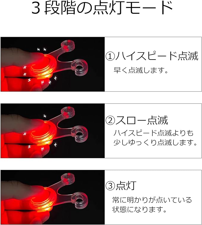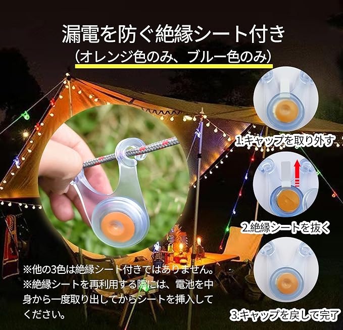 ★【夜を彩る選べる点灯モード】 本体を押すごとに 3種類の点灯モード(ハイスピード点滅、スロー点滅点滅、点灯)に切り替えることができて、 夜キャンプの素敵な時間を楽しく彩ります。※混色タイプは「点灯モード」が4色に自動で切り替わった後、各色に点滅します。