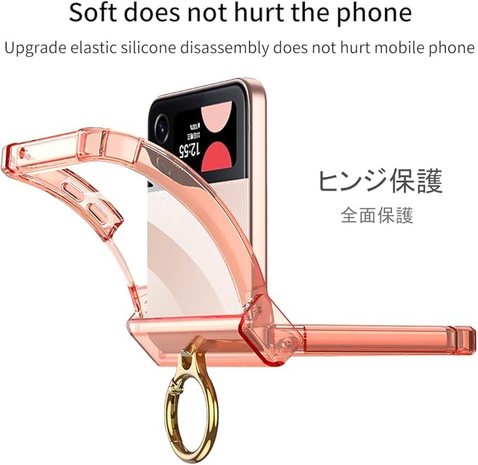 「ヒンジ保護」新しい一体型折りたたみヒンジ保護デザイン、折りたたみ時に露出したヒンジ部分を全面的に保護します。全方位のスマホを傷や落下で携帯電話を保護します。