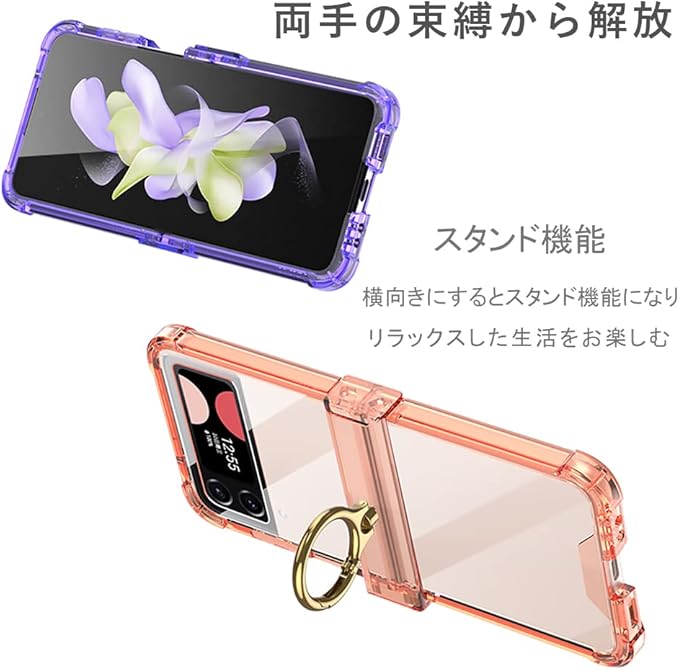 Galaxy Z Flip4 ケース クリア Samsung ギャラクシーZ フリップ 4 / docomo SC-54C / au SCG17 用 カバー リング付き ヒンジ保護 Uovon スマホケース 耐衝撃 スタンド機能 超軽量 超薄型 黄変防止 おしゃれ・クリア | KAZESHOP