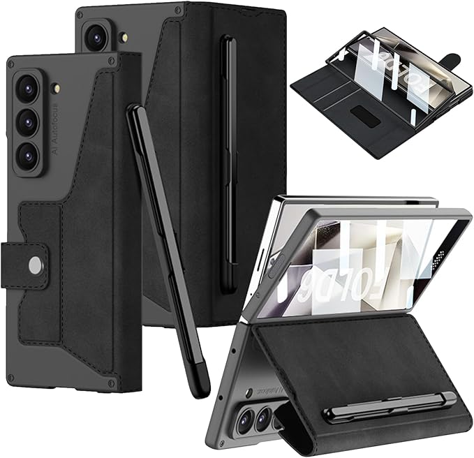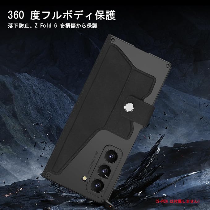 FODDOM Galaxy Z Fold6ケース ギャラクシーz フォールド6ケース 耐衝撃/汚れ防止/おしゃれ レザー/手帳型/スタンド機能/カード収納 レンズ保護 Fold6用全身保護 (ブラック) | KAZESHOP