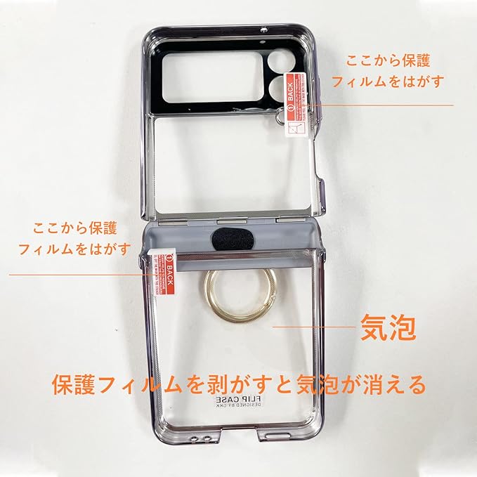 「互換性モデル」Samsung Galaxy Z Flip4 / docomo SC-54C / au SCG17「6.7インチ」用 クリア リング付きケース。※ご注意:取り付ける前に、上半分のディスプレの両面に、下半分の内面にある薄いフィルムを剥がしてください。尚、ディスプレイにより、现品とちょっと色差の問題がある场合があります。