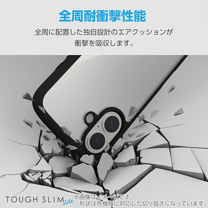 全周に配置した独自設計のエアークッションが衝撃を吸収し、背面には高硬度のポリカーボネートを採用した、TOUGH SLIM LITEケースです。